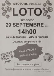 Loto Bingo Plus de 2400€ Bons d'achat 29 SEPTEMBRE 2024 Vitry le François (51)