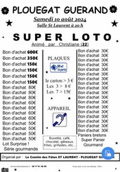 Samedi 2 Août 2025 super loto l'Amicale Laïque Mellac animé par René salle polyvalente square Job Saux