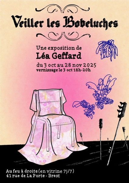 Léa Geffard nous présente une scène de veillée, pensée comme un écosystème de formes organiques et de couleurs éphémères. En empruntant le mot Saintongeais "bobeluche" à sa mère, Léa cherche à partager les infimes mouvement cachés dans les grains de poussière ou dans les petits riens, des détails qu'il faut prendre le temps de chercher.