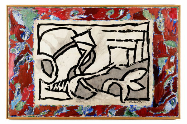 Pierre Alechinsky, peintre et graveur belge naturalisé français, né en 1927, fait partie du groupe CoBrA (COpenhague, BRuxelles, Amsterdam) de 1949 à 1951. D’abord formé à la typographie, il vient à la peinture en autodidacte. En 1965, il peint Central Park, œuvre magistrale qui marque un tournant dans sa carrière. Il y introduit ses premières « remarques marginales », marqueur essentiel de son travail artistique qui offrent une lecture sans cesse renouvelée de ses œuvres ; et adopte l’acrylique sur papier, délaissant progressivement l’huile et le chevalet, lui permettant de libérer son geste et son inventivité. Façonné par le milieu de l’imprimerie, Pierre Alechinsky se distingue aussi par son goût des papiers anciens, qu’il réhabilite pour leur offrir une nouvelle destinée, souvent emprunte d’humour.