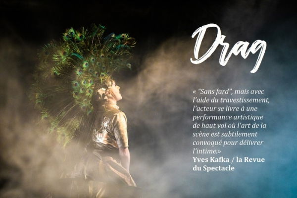 _Jérôme Batteux, comédien et auteur de "Drag" - dont il est le sujet - entend bien ce soir commettre un acte de liberté, revendiqué comme un viatique salvateur, en écrivant en lettres de feu son nom. - Yves Kafka pour la Revue du Spectacle_