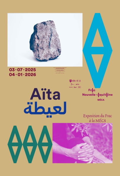 Le titre de l’exposition « Aïta », signifiant « cri », « appel » en darija (dialecte marocain), s’inspire de la série photographique « Le chant de l’ombre » (2018) de l’artiste Mohssin Harraki acquise par le Frac MÉCA en 2019. Comme un hommage à Hadda Al Ghaîtia dite Kharboucha, célèbre chanteuse marocaine engagée de la fin du XIXe siècle, Mohssin Harraki puise dans ses poèmes pour composer des vers qu’il écrit sur 7 pierres du Lot.