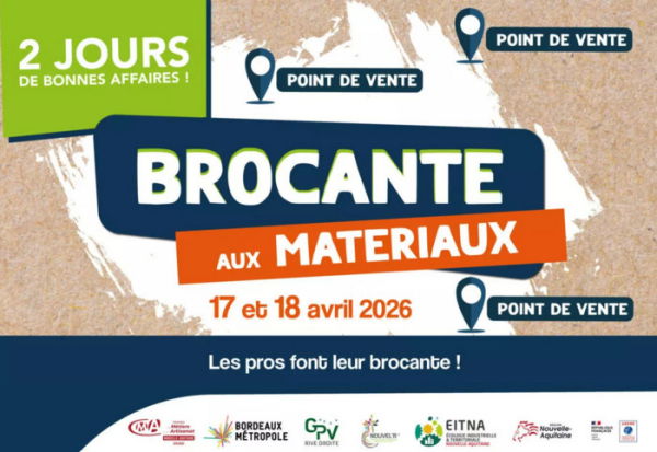 **\+ d'infos ➡️** [https://cma-nouvelleaquitaine.fr/a-cote-de-chez-vous/actualites/brocante-materiaux2026](https://cma-nouvelleaquitaine.fr/a-cote-de-chez-vous/actualites/brocante-materiaux2026)
