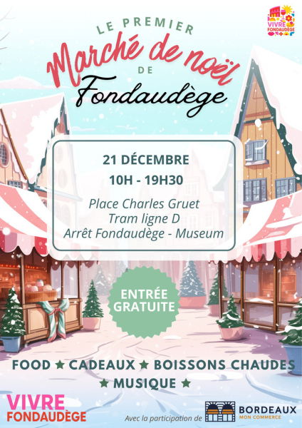 Les commerçants de la rue Fondaudège organisent leur tout premier marché de noël, le dimanche 21 décembre, sur la place Charles Gruet, à l'arrêt de Tramway Fondaudège-Museum.