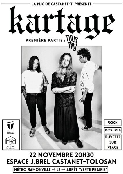 Originaire de Toulouse, Kartage est un trio de rock alternatif à l’énergie cathartique.