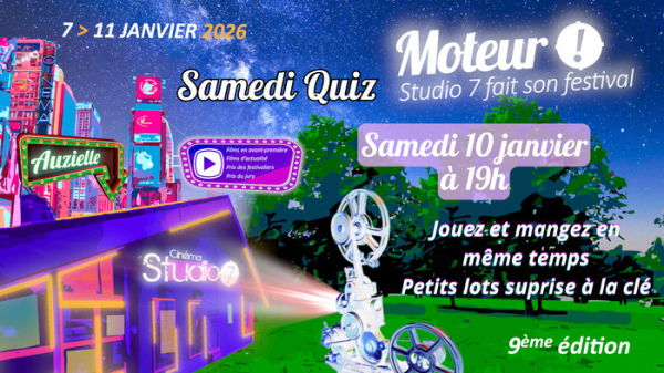 Samedi quiz pour venir jouer, seul-e ou en groupe, et manger durant cette soirée où vous pourrez tester vos connaissances cinématographiques tout en vous amusant grâce à l’ambiance créée par l’équipe du cinéma et ses bénévoles.