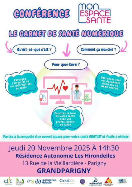 **Le CLIC du Sud Manche** en partenariat avec l’ARS, la CPAM et la Résidence Autonomie « Les Hirondelles » organise une conférence à destination des séniors du territoire, consacrée à _Mon Espace Santé_, la plateforme numérique sécurisée dédiée à la santé.