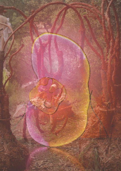 Les installations de Naomi Maury explorent les connexions interespèces d’un point de vue scientifique – qui s’incarne dans ses sculptures d’exosquelettes et de prothèses – et un axe mystique, via la lumière diffusée par des halos, sortes de membranes organiques lumineuses réalisées à partir de l’observation au microscope de cellules animales et végétales. Elle révèle ainsi une horizontalité entre les espèces, déconstruisant l’anthropomorphisme et réintroduisant une dimension spéculative dans les relations entre les formes de vie, comme le fait le biologiste Olivier Hamant lorsqu’il décrit le processus de métamorphose lent, aléatoire, et parfois inefficace des cellules, à l’encontre de nos sociétés optimales, rapides et tayloristes.
