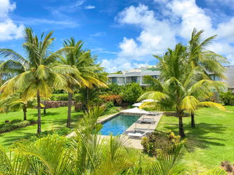 Trou aux Biches - À louer appartement neuf de 2 chambres en rez-de-chaussée avec piscine