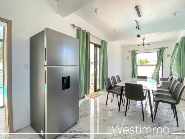 Nous avons le plaisir de vous proposer, à la location long terme, cette magnifique villa neuve de 3 chambres d'une surface habitable de 167m² de plain pieds. Située dans le centre de Grand-baie avec sa proximité du centre et son calme, cette Villa possède tous les atouts pour vous offrir une vie en toute quiétude.