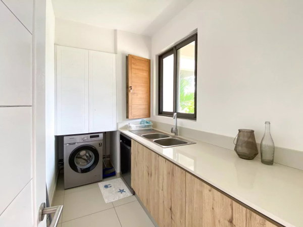 - Cuisine supplémentaire avec coin rangement, lave-linge et lave-vaisselle.