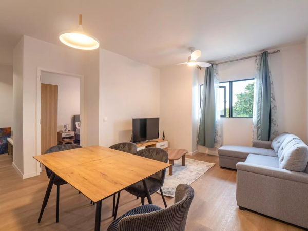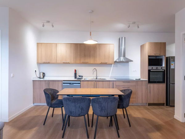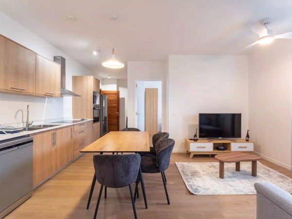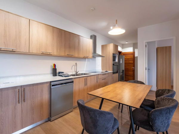 L’appartement, d’une surface de 62 m², est entièrement meublé avec soin dans un esprit cozy et fonctionnel. Il se compose d’une cuisine moderne ouverte, d’un salon convivial, de deux chambres confortables et d’une salle de bain bien agencée. L’ensemble est neuf, lumineux et prêt à être occupé immédiatement.