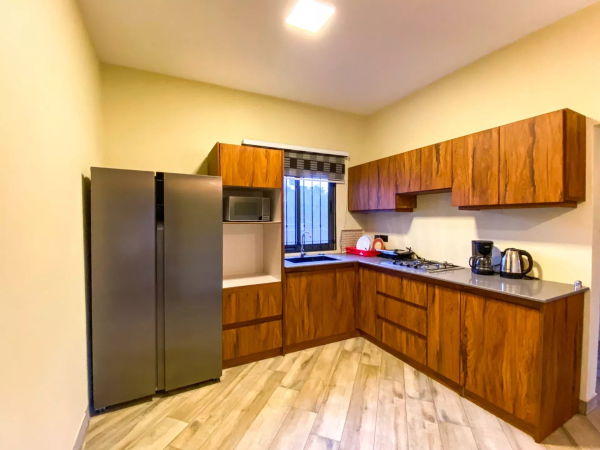- Une cuisine entièrement équipée avec réfrigérateur américain