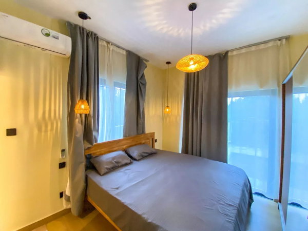 Trou aux Biches - À louer appartement neuf de 2 chambres en rez-de-chaussée avec piscine