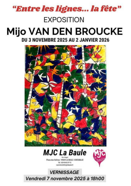 Mijo VAN DEN BROUCKE (artiste peintre) exposera « Entre les lignes… la fête » d au sein de la MJC La Baule (hall du 1er étage).