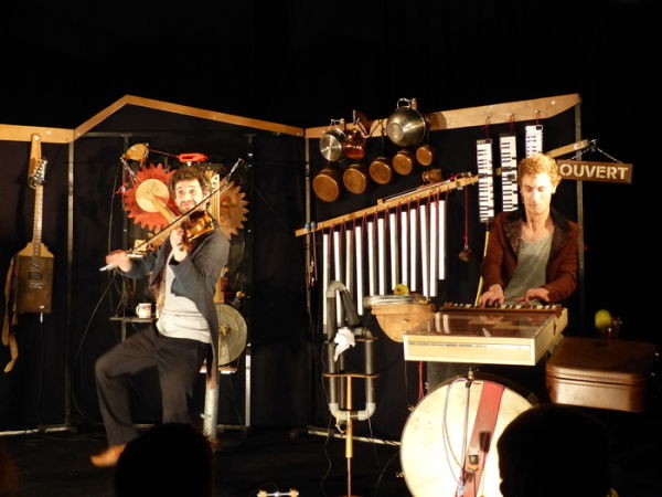 « Mesdames et Messieurs, aujourd'hui c'est déballage ! Devant vos yeux ébahis, qui nous dévisagent, nous dévoilons nos découvertes instrumentales, nos inventions vous sont offertes sur un étal ! »