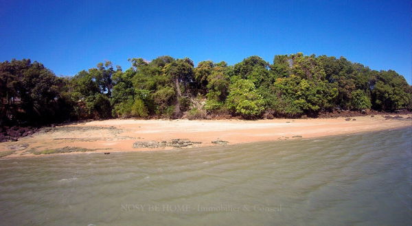 Terrain arboré offrant une façade sur plage de + de 300m de large avec un magnifique panorama sur quelques îlots épars et sur les îles de Nosy Komba et Nosy Be.