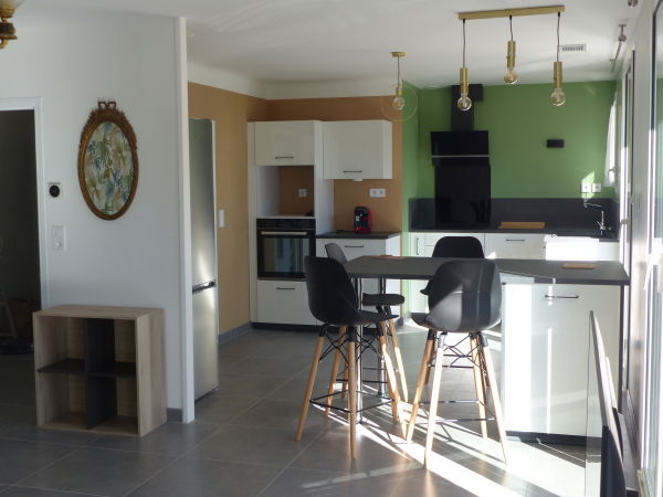 A louer Appartement T4 meublé de 90 m2, entièrement rénové, au 1er étage d’une maison individuelle dans un lotissement sécurisé, calme avec de nombreux espaces verts pour les enfants.