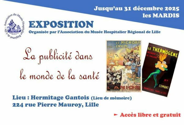 Dans le cadre de l’opération « Nos années PUB ! De la Réclame au Numérique » du réseau Proscitec, l’Association du Musée Hospitalier Régional de Lille propose une exposition sur la publicité dans le monde de la santé.