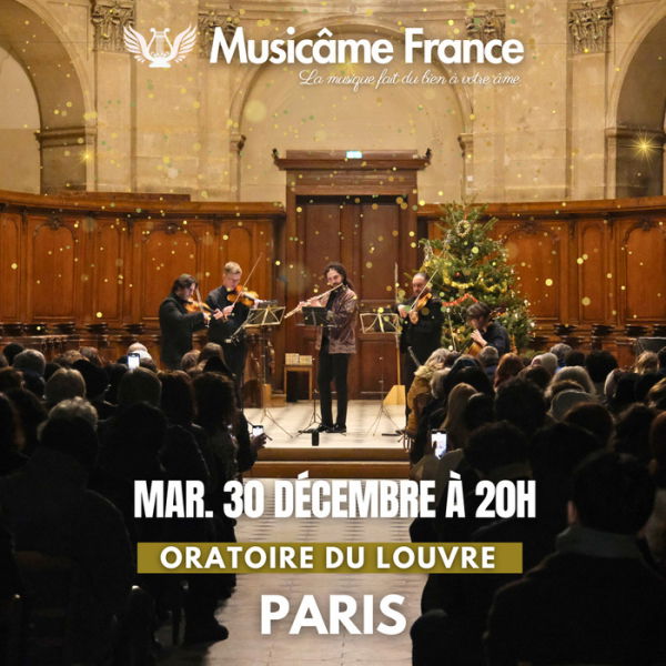 Pour célébrer les fêtes et accueillir 2026, l’ensemble Musicâme France vous invite à l’Oratoire du Louvre pour un concert empreint de ferveur et de lumière.