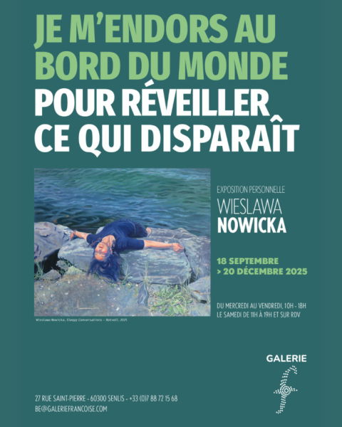 L’exposition _Je m’endors au bord du monde pour réveiller ce qui disparaît_ de Wieslawa Nowicka offre une plongée poétique dans des territoires oniriques, où paysage, rêve et mémoire dialoguent. Issues du projet pluridisciplinaire Sleepy Conversations, les œuvres – peintures, gravures et vidéos – captent des instants d’abandon : des corps assoupis ou endormis, blottis dans des paysages silencieux. Ces moments suspendus, précaires et transitoires, cherchent à renouer un lien sacré, depuis longtemps rompu, entre l’humain et le monde naturel.