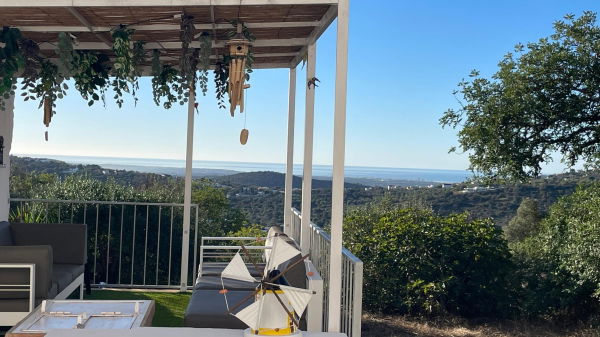 La propriété bénéficie d'une orientation Plein Sud offrant une luminosité maximale toute la journée, ainsi qu'une vue imprenable s'étendant sur la vallée jusqu'à la mer.