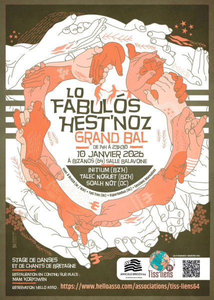 Inscription (nbr de places limité) : [https://www.helloasso.com/associations/tiss-liens64/evenements/lo-fabulous-hest-noz-2026-stage-d-initiation-au-danses-bretonnes ](https://www.helloasso.com/associations/tiss-liens64/evenements/lo-fabulous-hest-noz-2026-stage-d-initiation-au-danses-bretonnes)