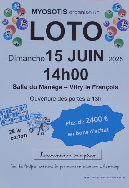 Loto Bingo Plus 2400€ Bons d'achat 15 JUIN 2025 Vitry François 51 Vitry-le-François