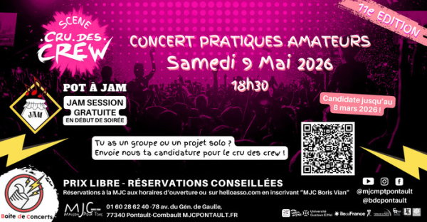 🌟 Participe à la date Cru des Crew #11 organisée par la commission bénévole La Boîte De Concerts de la MJC-MPT Boris Vian !