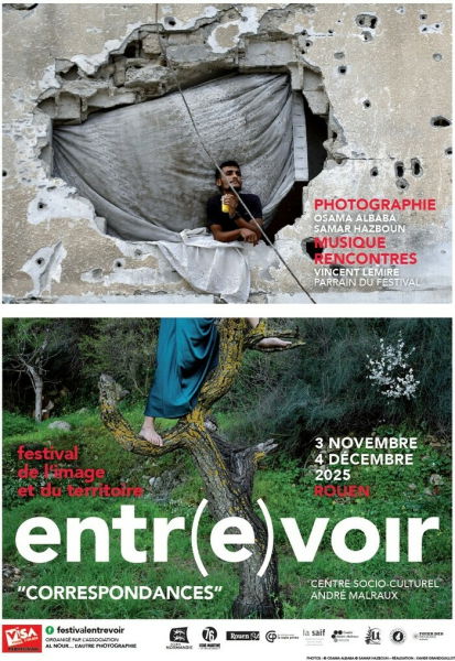 Placée sous le parrainage de Vincent Lemire et avec le soutien du Festival international Visa pour l’Image, cette 8ᵉ édition présente l’installation photographique « Correspondances » des artistes palestiniens Samar Hazboun et Osama Albaba. Entre meubles et valises, se déploie une installation où affleure la mémoire enfouie de Gaza et la trace des destructions en Cisjordanie.