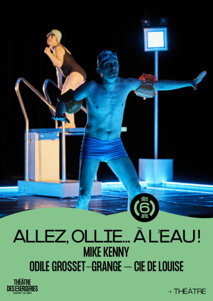 Mamie Olive s’est fracturée la hanche. En convalescence, elle s’installe dans la chambre de son arrière petit-fils, Ollie ! Et par-dessus le marché, voilà qu’il doit l’accompagner à la piscine alors qu’il n’aime pas l’eau… Il ne sait pas nager. Tout semble les séparer. C’est une vieille dame et il est plein d’énergie. Mais tout change à la piscine. Ollie découvre que son arrière-grand-mère était nageuse aux Jeux Olympiques de Londres en 1948. Incroyable ! Tout en lui faisant le récit de ses épreuves sportives, Mamie Olive guide Ollie à son insu dans l’eau… Odile Grosset–Grange met en scène ce beau texte de Mike Kenny, écrit comme un match pour aborder la question de l’âge, du lien intergénérationnel et de la nécessité de dépasser ses peurs… Un spectacle ludique et émouvant qui rappelle que l’essentiel c’est bien de se lancer… Prêts à plonger dans le grand bain ?!