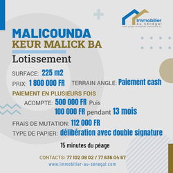Terrain de 300 mètres carrés à vendre à Malicounda, 30 minutes aéroport