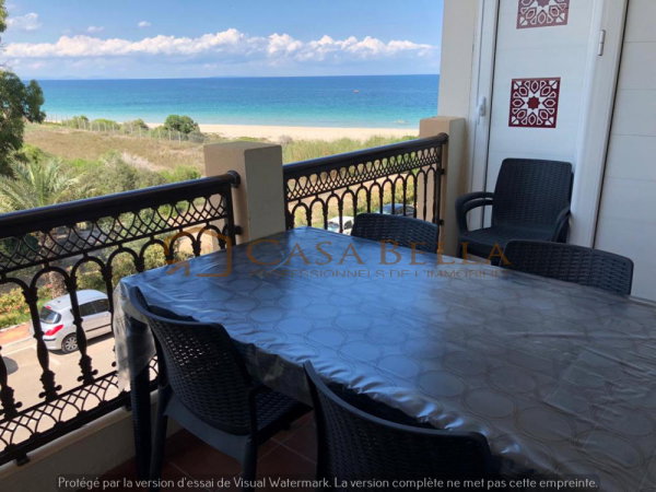 L’agence immobilière CASA BELLA 🏢🔑 met en location pour la saison estivale et les courtes durées un magnifique appartement haut standing, richement meublé, situé dans une résidence pieds dans l’eau à Chott Meriem.