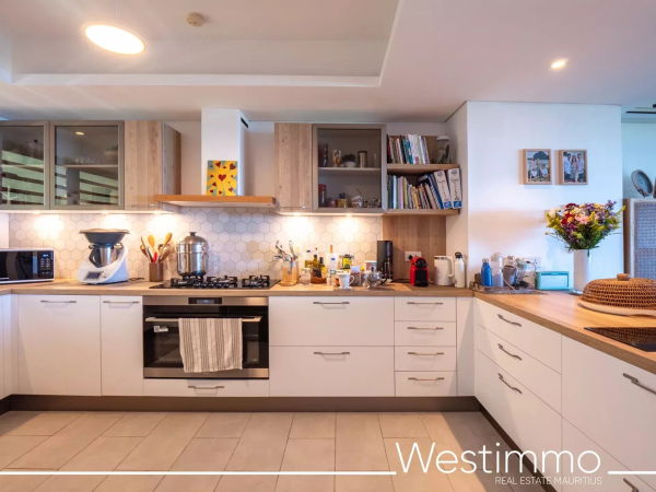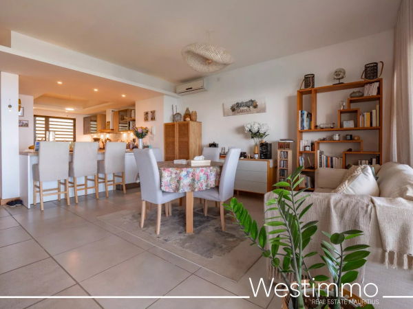 La résidence, véritable perle du secteur, se distingue par sa piscine commune — la plus belle de Maurice — et son emplacement privilégié. Depuis votre terrasse, profitez d’une vue à 180° sur l’océan, un spectacle quotidien inestimable. Un garage fermé vient compléter ce bien d’exception.