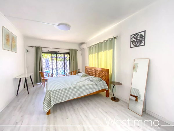 La cuisine ouverte entièrement équipée, ravira les passionnés de cuisine. La chambre en suite du bas, avec son dressing et sa salle de bains privative, vous offre un grand espace et un accès extérieur sur la piscine. Une varangue avec coin repas et espace détente vous invitera à profiter des douces brises tropicales tout en savourant vos repas en plein air.