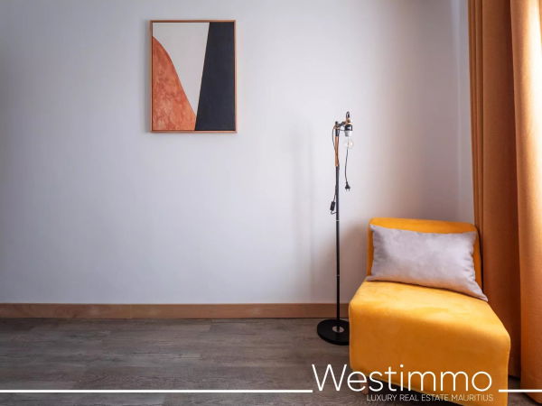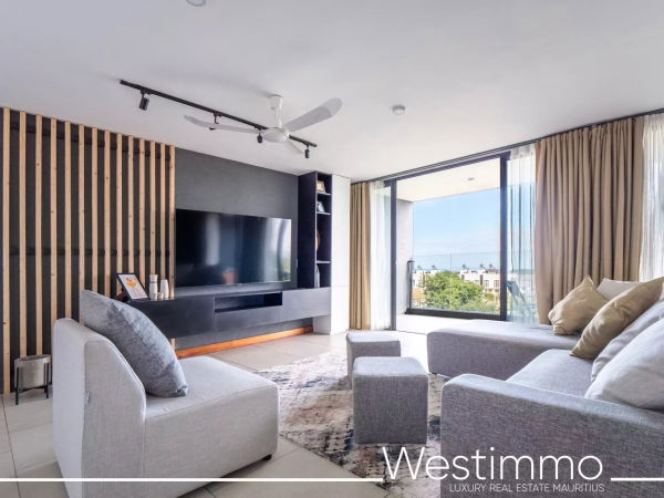 Magnifique appartement de 2 chambres avec son design et sa déco moderne est à vendre à Flic en Flac dans une petite résidence familiale avec un rooftop aménagé.