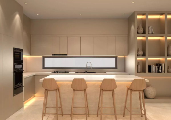 - Cuisine moderne : Cuisine équipée avec des matériaux de haute qualité et un îlot central, idéale pour cuisiner et recevoir.