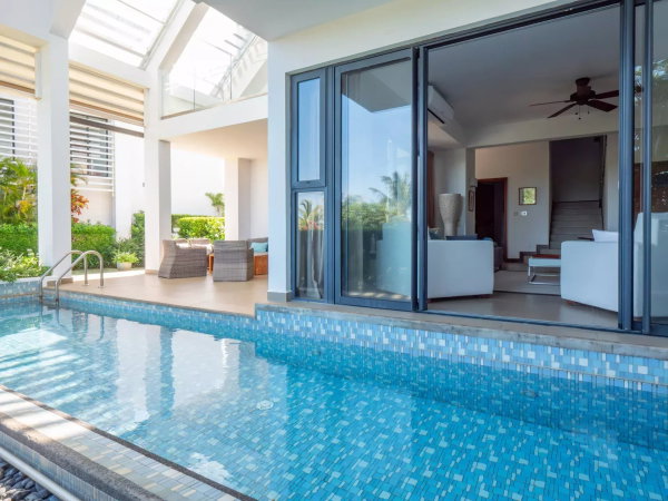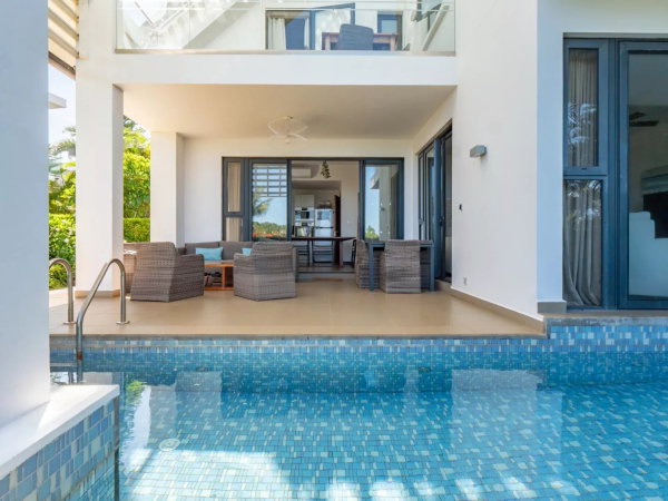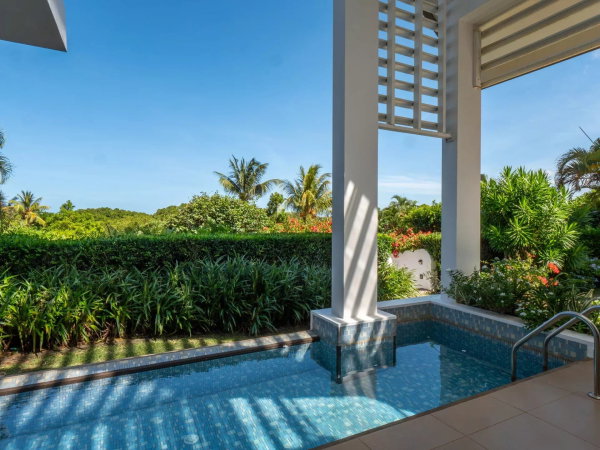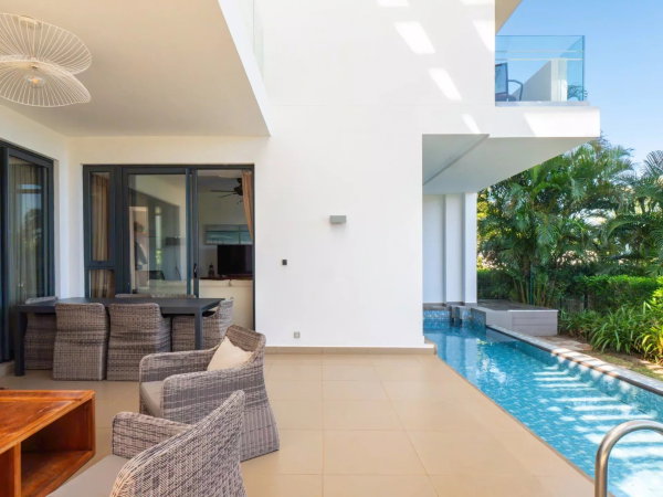 La résidence bénéficie également d’une piscine commune réservée exclusivement à ces lots, avec un espace aménagé type bar et plage. Toutefois, la villa est idéalement positionnée en retrait, sans vis-à-vis direct sur cette piscine, renforçant le calme et l’intimité du bien.