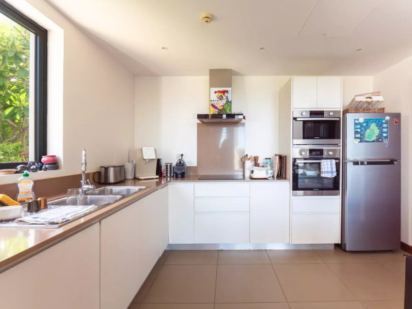 La propriété se développe sur trois niveaux et offre des volumes généreux, une luminosité remarquable et des vues spectaculaires sur l’océan et le lagon.
