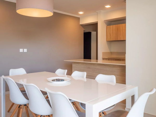 L’appartement se distingue par ses volumes généreux et sa distribution fluide. Il comprend une entrée accueillante, une buanderie indépendante, une cuisine entièrement équipée et fonctionnelle, ainsi qu’un vaste salon lumineux ouvrant sur une large terrasse, idéale pour profiter de l’environnement côtier.