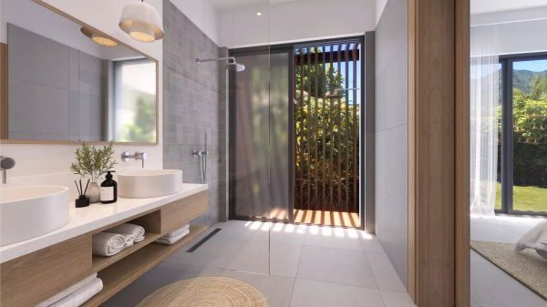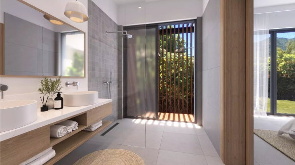 Chaque pièce a été pensée pour magnifier la douceur de vivre mauricienne : cuisines haut de gamme, chambres spacieuses avec baies vitrées, salles de bain aux finitions soignées et une parfaite fluidité entre les volumes.